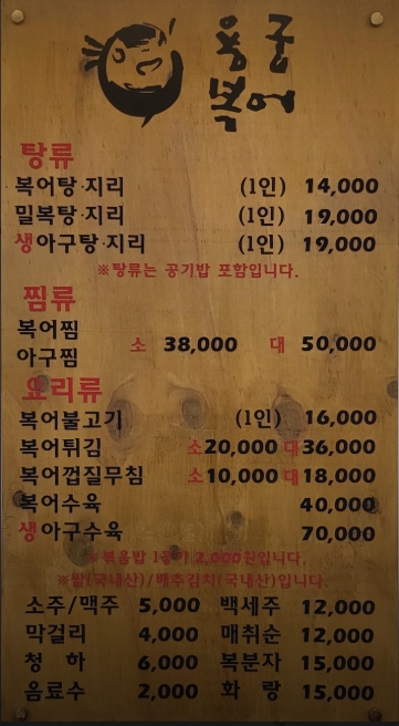 - 복어찜 / 아구찜 (小) — 38,000원 / (大) 50,000원